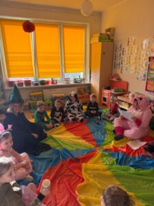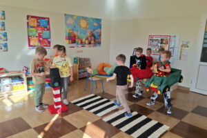 5 listopada, przy okazji Dnia Postaci z Bajek, przebraliśmy się za ulubionych bajkowych bohaterów. Bawiliśmy się przy muzyce, wykazaliśmy się wiedzą na temat bajek i bajkowych postaci, biorąc udział w quizie dotyczącym tych wiadomości. Na koniec zabawy otrzymaliśmy medale przyjaciół postaci z bajek .