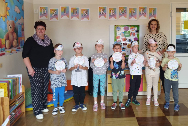 15.09. to Dzień Kropki. Jest to święto odkrywania talentów, kreatywności, odwagi, a przede wszystkim dobrej zabawy. Dzieci poznały historię dziewczynki, która stała się inspiracją dla tego święta. Na podsumowanie tego dnia, dzieci otrzymały certyfikaty