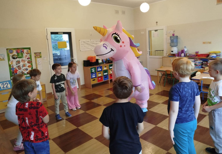 22.09. obchodziliśmy Dzień Przedszkolaka. Przy tej okazji bawiliśmy się razem z jednorożcem przy muzyce, a także wzięliśmy udział w innych wspólnych zabawach. Na koniec dnia otrzymaliśmy również upominki 😋.