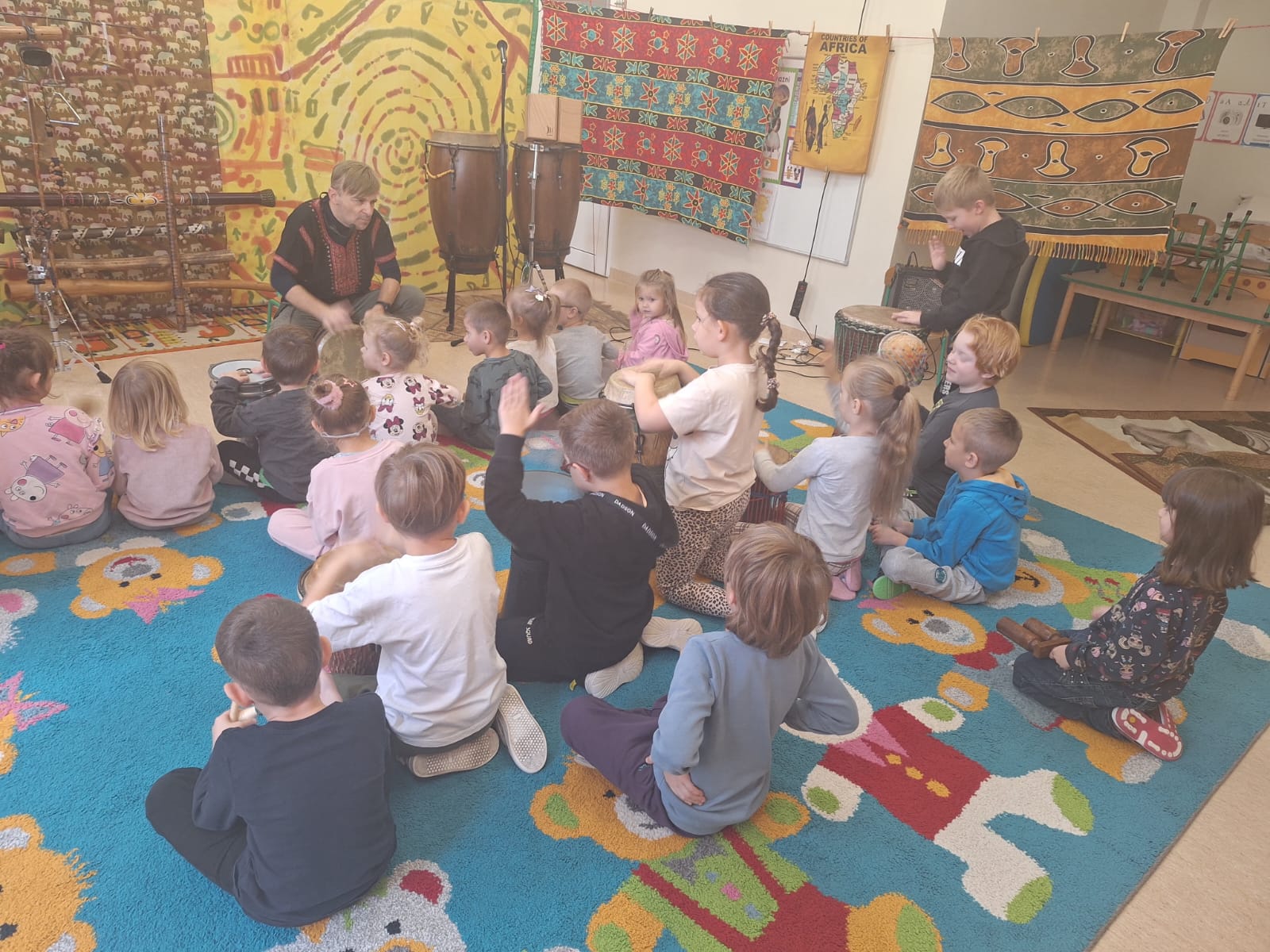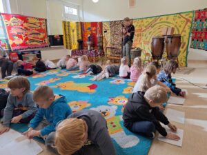 29października mieliśmy okazję do zapoznania się z muzyką etniczną wykonywaną na instrumentach perkusyjnych i dętych . Mogliśmy również samodzielnie spróbować gry na niektórych z nich. Ciekawym elementem spotkania była próba narysowania słuchanej muzyki 🖍✏️.