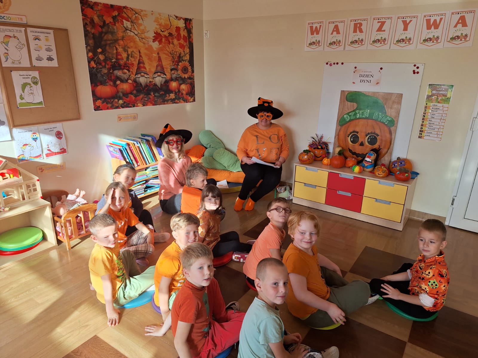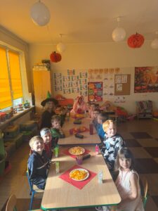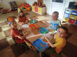 W ostatnim dniu października było Święto Dyni. Przy tej okazji poznaliśmy sporo ciekawostek o tym warzywie, bawiliśmy się wesoło i „dyniowo” w czasie zumby, wykleiliśmy kontur dyni odpowiednimi kolorami. Wspólnie oglądaliśmy dynie, ozdobione przez nas wcześniej. Wszystkie były bardzo ładnie i ciekawie udekorowane 🤩🎃.