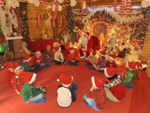 10.12. pojechaliśmy do Fabryki Słodkich Animacji w Bolesławowie, która mieści się w domku Mikołaja . Zostaliśmy ugoszczeni przez mikołajkowe elfy, które przygotowały dla nas sporo ciekawych atrakcji . Spotkaliśmy się także z Mikołajem . To był bardzo wesoły czas .