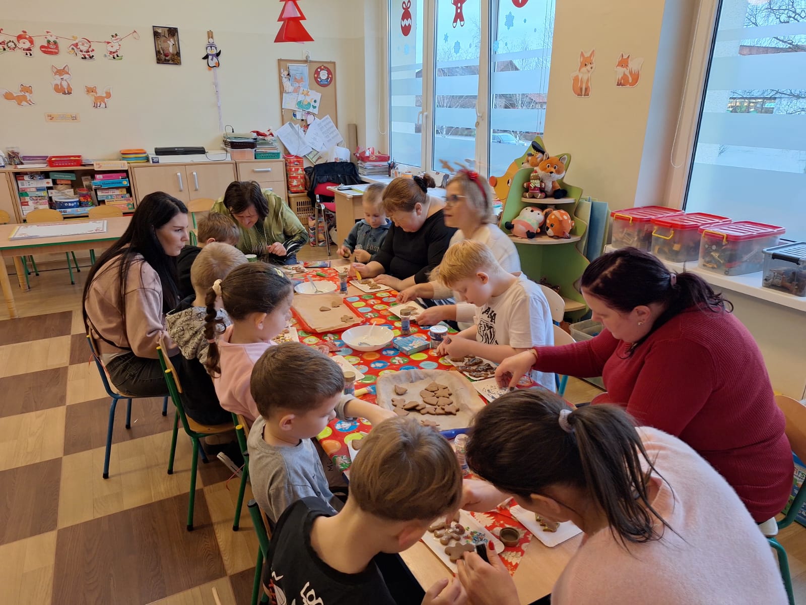 12 grudnia w naszej grupie zapanował świąteczny nastrój. Tego dnia odbyło się wigilijne spotkanie z rodzicami. Bożonarodzeniowy klimat dopełniały okolicznościowe dekoracje i choinka. Na stole leżało mnóstwo pierniczków i posypek do ich dekorowania. Przy akompaniamencie kolęd, dzieci wraz ze swoimi gośćmi ozdabiały świąteczne ciasteczka . Dodatkowo spotkanie wzbogaciły zabawy integracyjne, do których aktywnie włączyli się rodzice. Później wszyscy napisali (i narysowali ), jaki jest ich wymarzony prezent od Mikołaja . Na zakończenie wszyscy degustowali własnoręcznie przygotowane pierniczki. Spotkanie świąteczne w naszej grupie upłynęło w miłej i serdecznej atmosferze. Takie szczególne momenty wzmacniają wzajemne relacje, integrują dorosłych i dzieci .